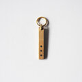 静かな輝きを放つ真鍮のボディに、化学反応で黒染めした3点の銅をアクセントとして象嵌(ぞうがん、埋め込んだ)したハンドメイドのキーホルダー。