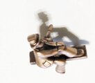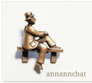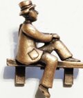 正装した男性が脚を組んでベンチに座っている ヴィンテージの立体的なピンブローチです。