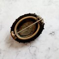 裏面はウィットビージェットと金属。必要に応じてペンダントとして着用できます。裏面には、亡くなった愛する人の髪の毛や写真を保管するパネルがあったと思われます。ブローチとして着用し、心臓の近くに置き、ビクトリア朝のウィットビージェットで囲みます。ビクトリア朝のウィットビージェットは、死と哀悼の象徴として使われた人気の石です。