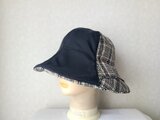 魅せる帽子☆急な雨にも安心!!リバーシブルレインハット~ブラック&チェック柄