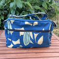 横浜の伝統技術である捺染(なっせん)製法を使って型染めをしたオリジナルテキスタイルを使い、職人の手によって一点ずつ手縫いで縫製しています。
