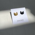 ガラスの鮮やかな色が映えるvitreous enamel (七宝焼)の小さなねこのピアス。