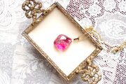 複数の赤とピンクが滲みあい奏でるハーモニーが美しいペンダント。