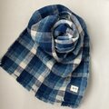 深みのある青から白のグラデーションが作るチェック柄は、巻くだけで顔まわりを明るく見せてくれます。