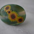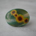 【iichi限定】天然石 緑瑪瑙とひまわりの帯留め【一点物】 ブローチ ポニーフック