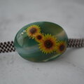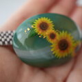 【iichi限定】天然石 緑瑪瑙とひまわりの帯留め【一点物】