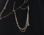 アネモネカラー・天然石と絹のネックレスパールの位置によって、長さはもちろんトップの形を変えられるのがユニークで変化が楽しめて嬉しいです。 以前ネックレスを落としてしまったことがあるので、被り式のネックレスは安心して身につけられて助かります。 ネック部分やタッセルがシルクで、汗ばむ季節にも肌あたりが柔らかそうで嬉しいです。トップに合わせたタッセルの色合いも好きです。 素敵な作品をありがとうございました!
