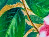 胡蝶侘助という椿の花のクレヨン画になります!