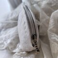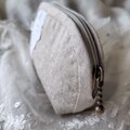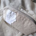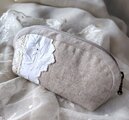 ナチュラルなリネンにアンティーク手刺繍レースをのせたポーチです。