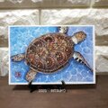 原画 1点もの ボールペン画 日本人作家 色鉛筆画 絵画 絵 アート 額入り 額装付き 現代アート インテリア 亀の絵 カメの絵