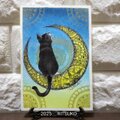 アート 額入り 額装付き 現代アート インテリア 猫と月 猫の絵 三日月