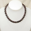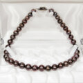 照りの美しいダークトーン(パープルがメインのマルチカラー)の大粒本真珠(淡水パール)を使ったネックレスです。