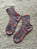 ちなみに竹串か?!ってくらい細い針で編んでるので意外と薄いです。普通の靴下と同じように履けますよ