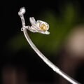 このかんざしは、胡蝶蘭の優美さと繊細さを見事に表現しています。かんざしの先端には、上品に咲き誇る胡蝶蘭の花が緻密に製作され、見る人を魅了します。光を受けて輝くその姿は、まるで本物の花のように生き生きとしています。
