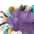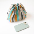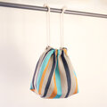 リネンの生成り糸と絹の染め糸を使い布を織り、4色のストライプ柄の巾着バッグを作りました!