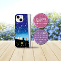 iPhone専用 手帳型スマホケース 【内側色:ホワイト仕様】カメラ穴有【ほのぼのにゃんこ(流れ星と蛍火)】