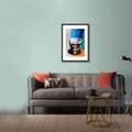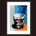 背景の色彩がグラスに映り込むコントラストをイラストにしたモダンアートポスター。
