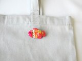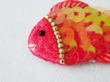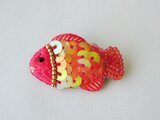 キラキラ鱗の赤いお魚 刺繍ブローチ 【受注製作】