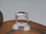 リングのサイズは14号、重さは18g、最大幅は32mm、金属部分は純銀です。