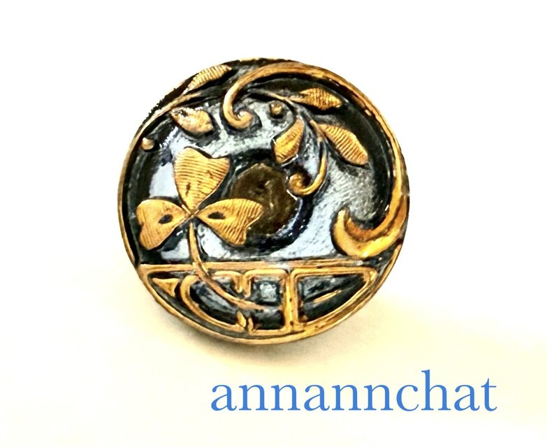 このチェコガラスボタンは、100年以上前 アールヌーボー期に作られた型を使用し、型押しから彩色まで すべて手作業で行われています。