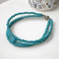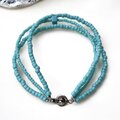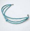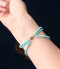 スクエアターコイズ(天然石)を中心に大小の同色ガラスを連ねた3連ブレスレット。