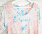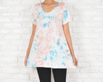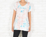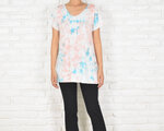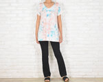夏の新作!ムラ染めストレッチVネックTシャツ <ブルーピンク>