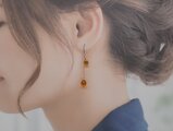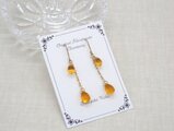 大きさの違うトパーズ色のしずくビーズがゆらゆら揺れる透明感のあるピアス/イヤリングです。