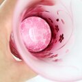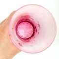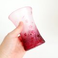 *素材は金赤というピンク色の外被せのガラスを使用しています。金赤は金を使い発色させているのでとても高価です。(切子で使用しているものです。)