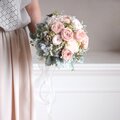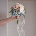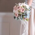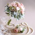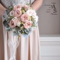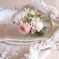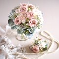 ⋆3点set⋆ パウダーピンクベージュ:クラシカルローズ・かすみ草 ラウンドブーケ⋆ブートニア・ヘッドドレス