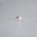 やさしいライラックピンク色が素敵な湖水真珠1粒ネックレス。