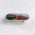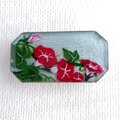 アクリル絵の具で花や葉を少しずつ描き、レジンを上から流して硬化させる。硬化したレジンにまた、アクリル絵の具で花や葉を描き、レジンを流して硬化させる・・・これを何度も繰り返して、作品を完成させます。繰り返す回数は作品の大きさや描く物によって違いますが、通常の大きさ(4㎝×3㎝)であれば7、8回です。