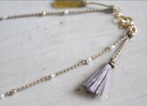 ファインダーで「朝露の一瞬」を覗いたような透明感のあるネックレスです。アメシストはたまねぎ型でお尻のとんがりがなんともいえずかわいらしい。キラキラと上品で端麗な印象ですが、意外にYシャツの胸元では魅惑色に見えます。後姿のタッセルも感じ良く全方位から見ても実は隙のない強気なデザインがツボ。お洒落ってホント楽しい☆と思わせてくれる素敵な作品に仕上げていただきました。