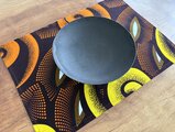 オレンジ色とイエローの模様が、シンプルな食器ともアクセントになり、華やかなごはんタイムになるでしょう!