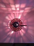 ハートのランプシリーズの要素である、下方部をハート型に照らし、そのまわりにも、ガラス越しにハートをえがき、ハートを2重(ダブルハート)にしました。