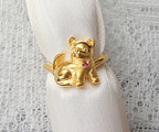純金仕上:天然ルビー・子犬リング(シルバー)/日本製