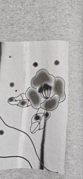 墨のような黒のアートラインと、椿を思わせる花のモチーフが、