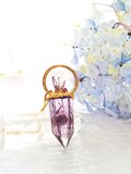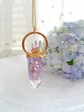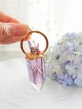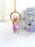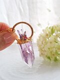 アメジストのポイントに小さなベラクルスアメジストとハーキマーダイヤモンド ルビーなどをデザインしたネックレスです。