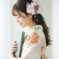 淡いくすみピンクとホワイトの組み合わせが、どのカラーのお着物にも寄り添い、成人式・結婚式・前撮りなど、大切な1日にぴったりの洗練された美しさを演出します。