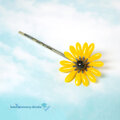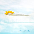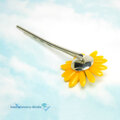 広がるイエローのダガービーズが、太陽のもとで元気いっぱいに花開く、小さなひまわりのようなお花のヘアピンです。