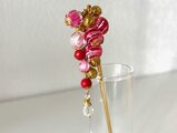 かんざし 夏祭りのヨーヨーの様なクリアカラービーズ 赤&ピンク 一本挿し 一本簪 涼しげ 水風船 縁日 レッド