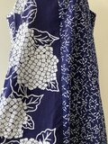 半分は紺に白の大きなあじさい、もう半分は唐辛子柄です。