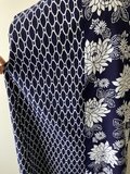 半分は紺に白の菊、もう半分は楕円柄です。