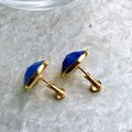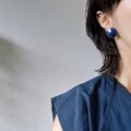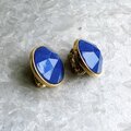 ゴールドトーンをベースにロイヤルブルーのアクリルカットが美しいクリップイヤリング。