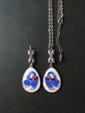 アジャスター先にもJapanヴィンテージのモンタナBlueのGlassビーズ、チェコ製のガーネットにオーロラ加工がうっすら入った小さなGlassビーズで飾りました。
