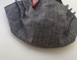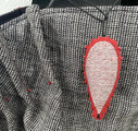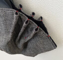 アクセントにタック縫いとバッグ口の止めに赤い糸と赤いビーズを使っています。