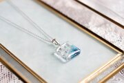 転がる雫のようにも海のあぶくのようにも見えるブリオンと、二種類の青が涼やかで清廉な印象のペンダント。