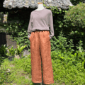 柿渋染め播州織パンツ23086和モダンな素晴らしい作品を有難うございます。 サイズも丁度良く嬉しいです お揃いのマスクもステキですね。又何か頂きたいと思っております。