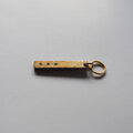 静かな輝きを放つ真鍮のを金槌で叩いた槌目のボディに、化学反応で黒染めした3点の銅をアクセントとして象嵌(ぞうがん)したハンドメイドのキーホルダー。