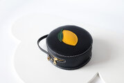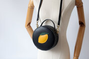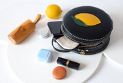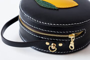 フロントにあしらわれた立体的なレモンモチーフが目を引く、手縫い仕上げの本革ラウンドバッグです。