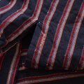 この一着は、表裏ともに縞模様が施された二重仕立てで、さらに襟には藍染布が使われた、非常に珍しい仕様となっています。